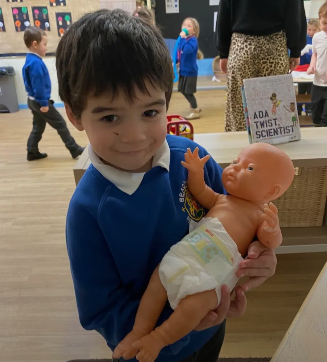 It is useful if your child can bring a pair of wellies and a waterproof jacket to school so that they can learn and play outside even when it is wet. These can be kept at school.