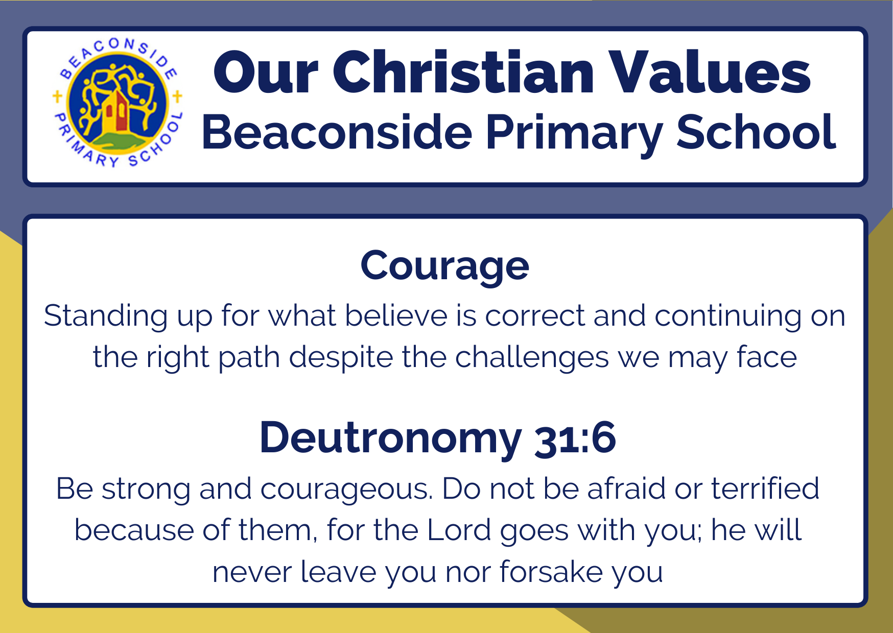 • Courage – empowering children to be brave, try new things, speak up, and stand by what is right